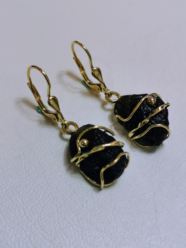 Zlaté naušnice žluté zlato s přírodním vltavínemNení skladem/ ks