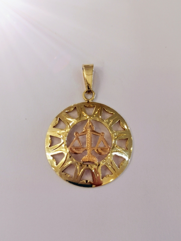 Zlaté znamení váhy ze žlutého a červeného zlata, ruční rytí. Narození ve dnech 23.9. - 23.10.