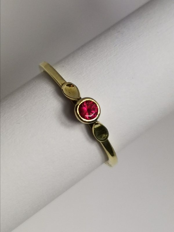 - Zlatý dámský prsten s červeným kamínkem