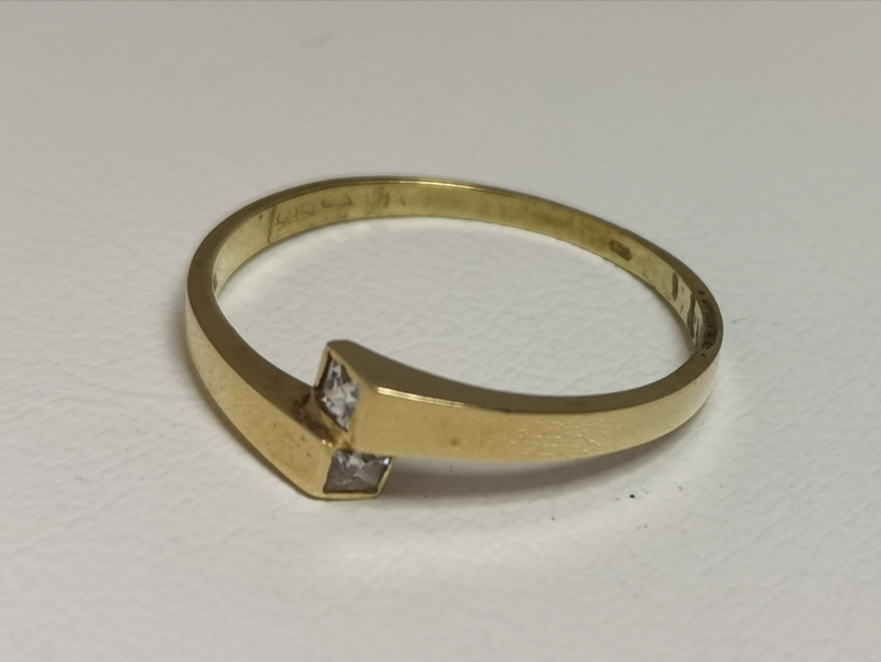 - Zlatý dámský prsten se dvěma zirkony