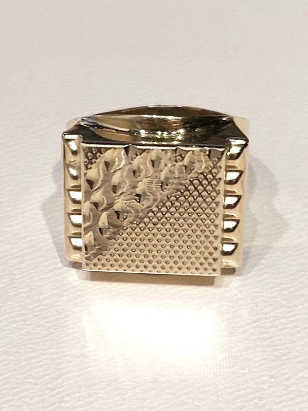 Velice krásný, mohutný, klasický pánský zlatý prsten. Velikost 64 patří mezi velikosti středního pánského prstu. Prsten bude na pánské ruce vynikat.