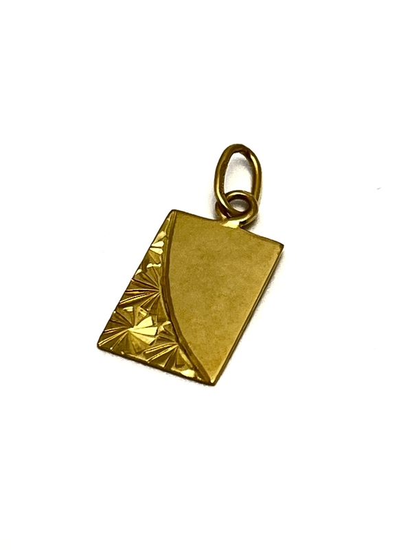 Přívěs destička ze žlutého zlata. Destička je ručně rytá. Zakázková česká práce