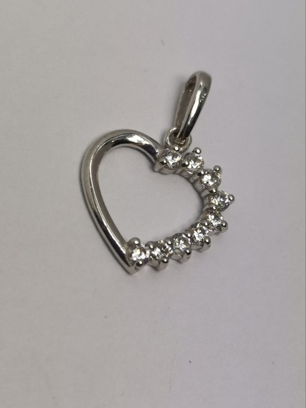 Nádherný přívěs srdce je vyroben z bílého zlata a na jedné polovině zdoben malinkými bílými zirkony.