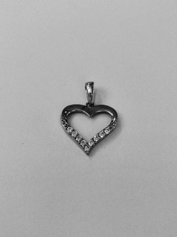 Nádherný přívěs srdce je vyroben z bílého zlata, na spodní polovině je zdoben malinkými bílými zirkony.