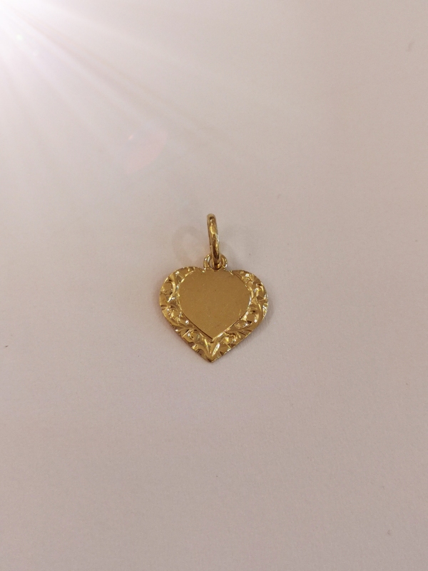 Nádherný přívěs srdce je vyroben ze žlutého zlata. Srdce je ručně ryté.