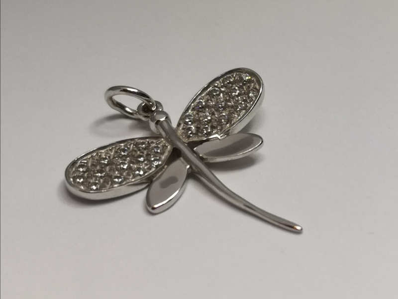Nádherný přívěs vážka ze bílého zlata s malými bílými zirkony.