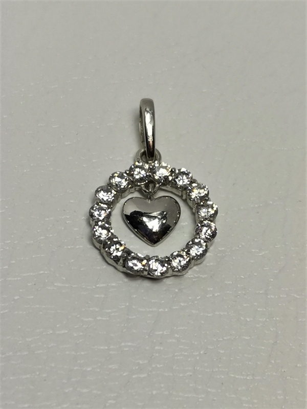 - Zlatý přívěs z bílého zlata srdce v kroužku se zirkony