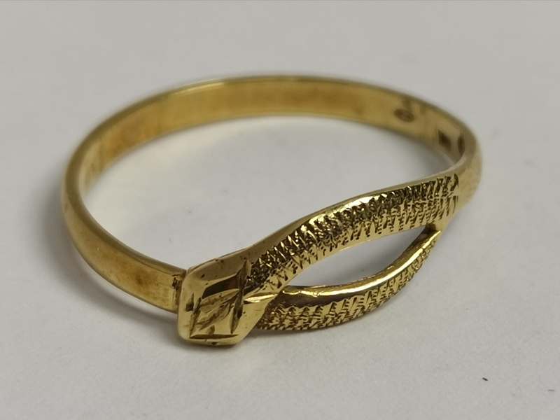 Krásný prsten ze žlutého zlata ve tvaru stočeného hada. Velikost 61 odpovídá většímu dámskému prstu. Skvělý dárek pro ženu, která má ráda netradiční šperky. Mimo jiné také skvěle sedí na palci.