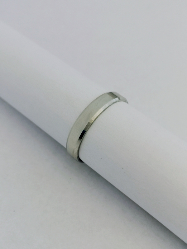 Prsten je vyroben z bílého zlata. Je to elegantní, široký kroužek. Jeho elegance spočívá v jeho jednoduchosti. Prsten lze použít i jako snubní.