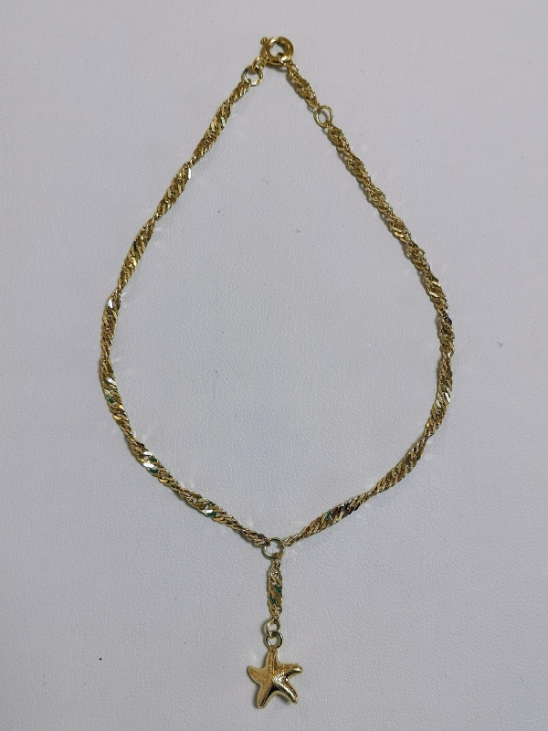 Zlatý řetízek na nohu s mořskou hvězdicí, nebo náramek na silnější ruku.