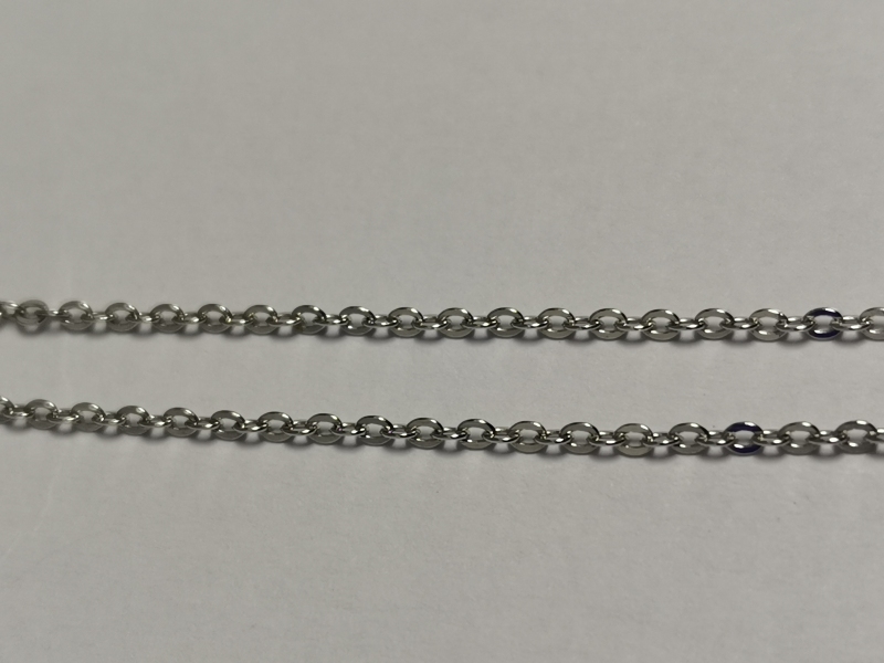 Zlatý řetízek anker z bílého zlata. Je velice elegantní, jemný. Délka 42 cm vychází cca 2 cm pod klíční kost klasického dámského krku.